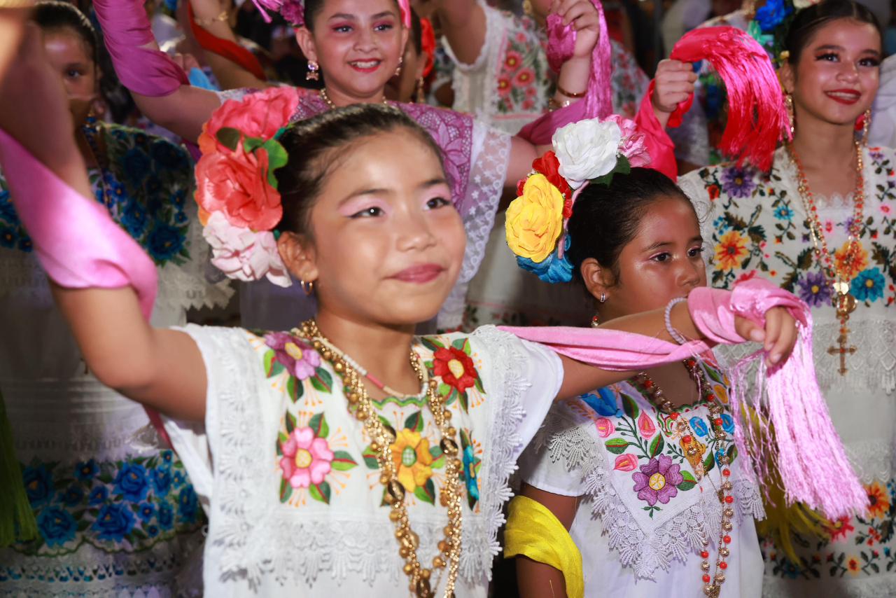 Mujeres, hombres, niñas y niños lucieron con orgullo los trajes típicos regionales, llevando consigo la riqueza cultural que distingue a Isla Mujeres ante México y el mundo.