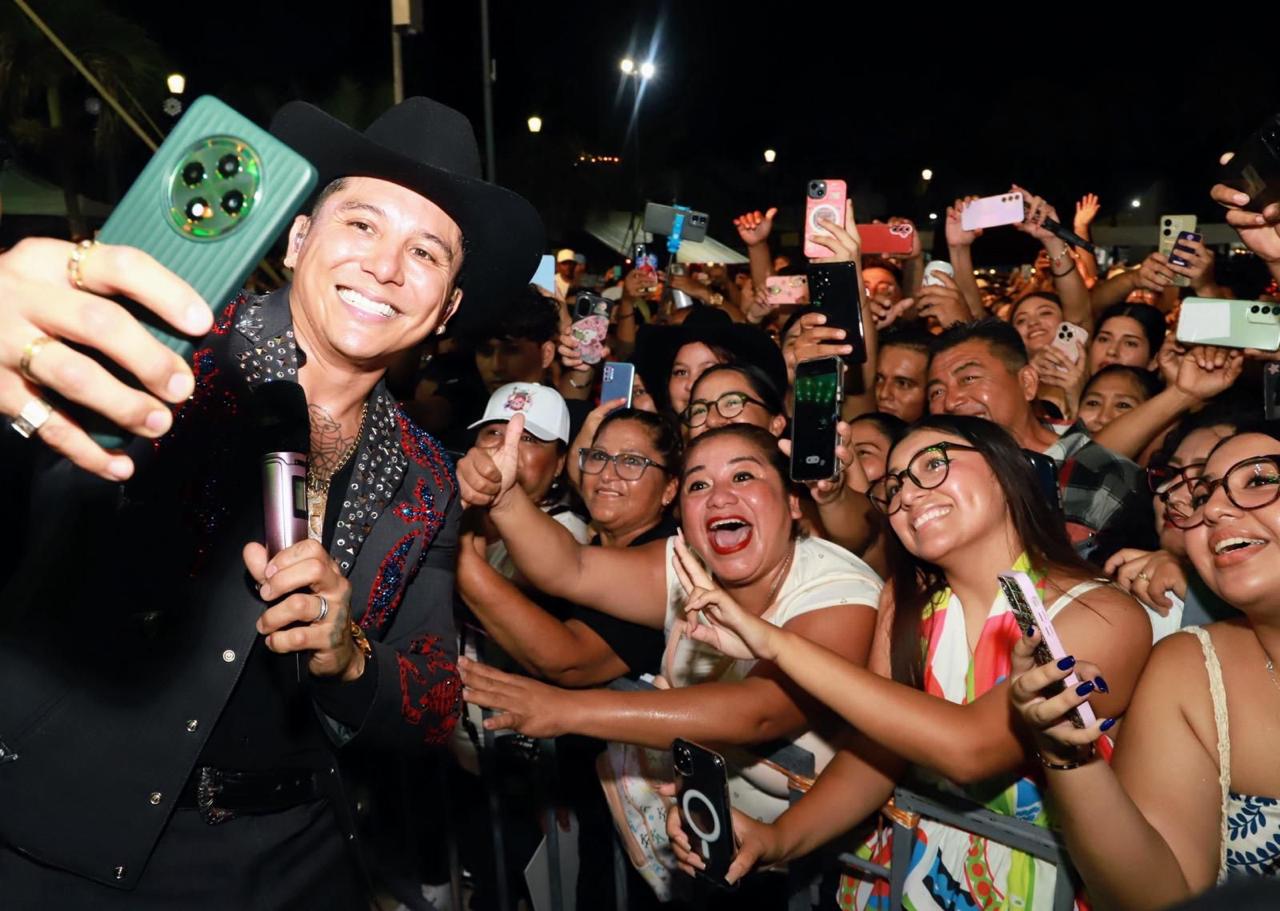 Isla Mujeres.- Con lleno total y un ambiente de alegría y convivencia familiar, las isleñas e isleños y visitantes, disfrutaron de la presentación estelar de Edwin Luna y La Trakalosa de Monterrey, en el marco de los festejos por el 175 Aniversario de la Fundación de Isla Mujeres.