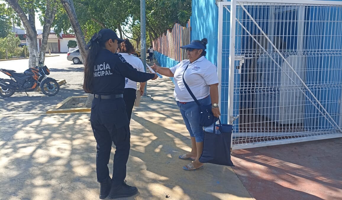 Isla Mujeres.- Con la finalidad de prevenir la violencia de género en contra de las mujeres, el Gobierno Municipal a través de la Dirección General de Seguridad Ciudadana y Tránsito instaló un módulo y además difundió el volante informativo «Prevención de la violencia hacia las mujeres».