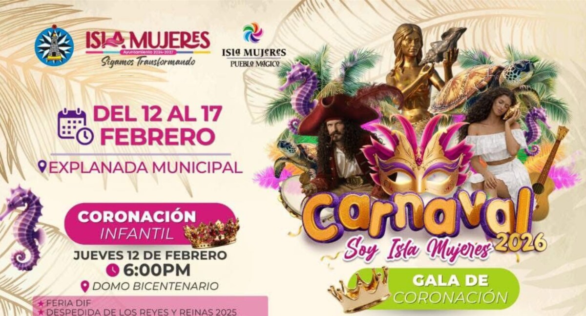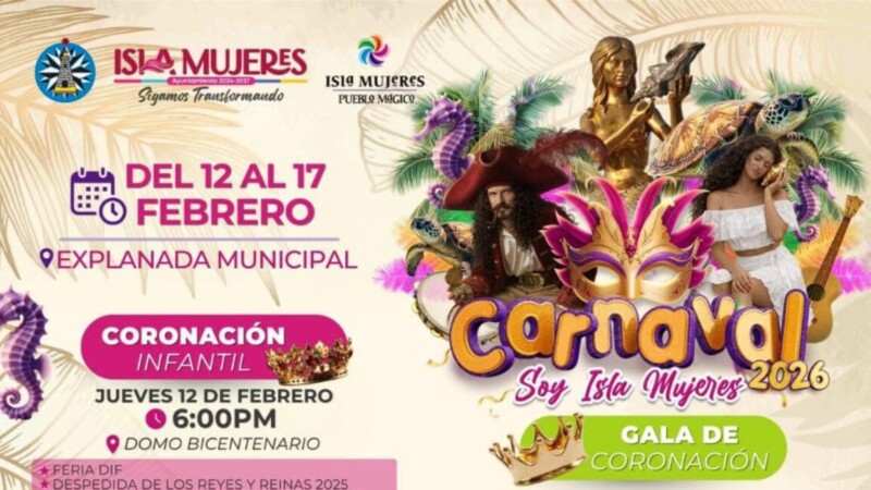 Ya se encuentra todo listo para celebrar el Carnaval “Soy Isla Mujeres” 2026, una de las fiestas más alegres y esperadas por las familias isleñas y visitantes, que año con año fortalece la identidad cultural, promueve la convivencia social y genera bienestar para las familias isleñas.