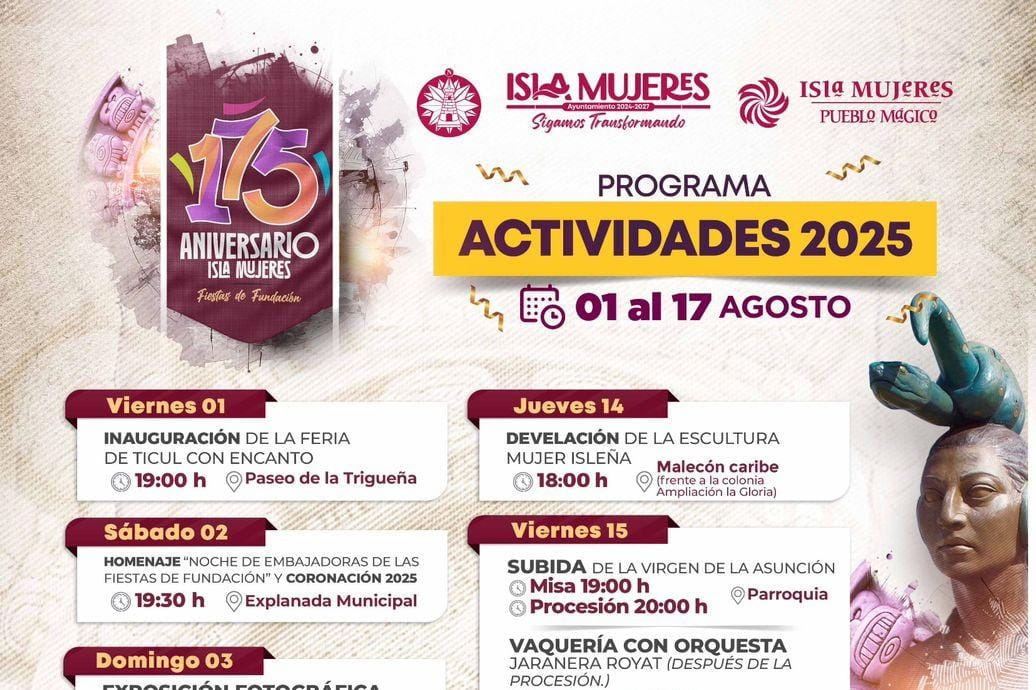 Isla Mujeres.- La Presidenta Municipal, Atenea Gómez Ricalde, hizo un llamado a las isleñas e isleños para sumarse con entusiasmo al inicio de las Fiestas de Fundación 2025, que conmemoran los 175 años de historia de este querido pueblo.