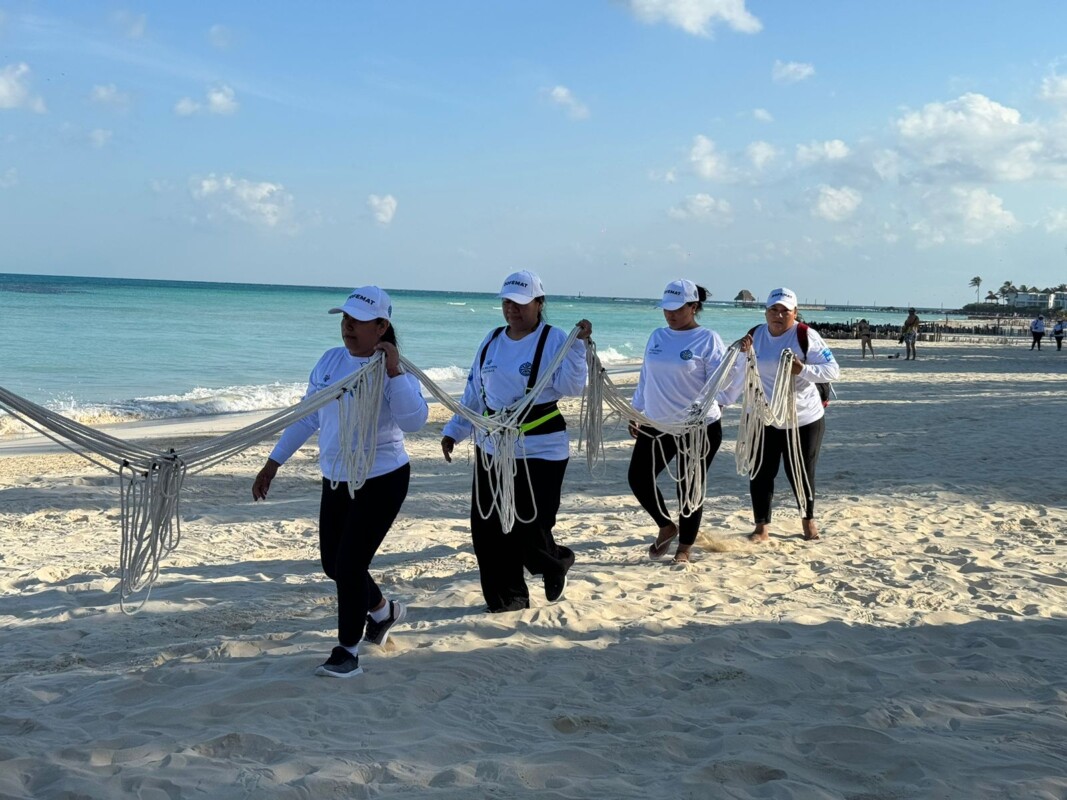 Preparativos para el izamiento de la bandera Blue Flag en las playas de isla mujeres
