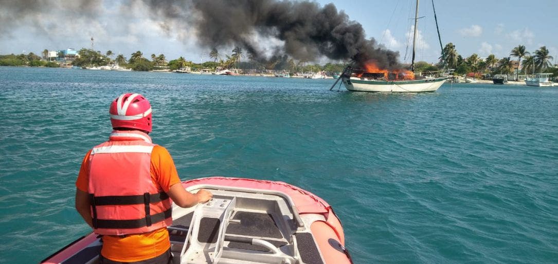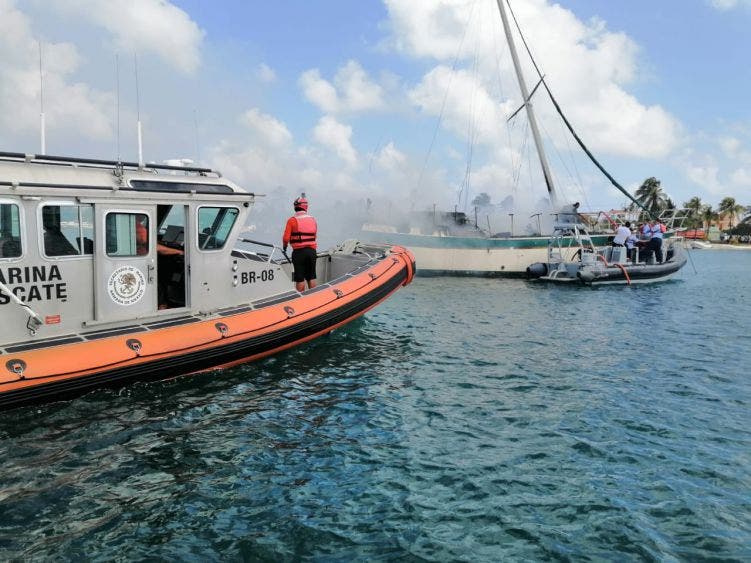 Sofoca Marina-Armada Incendio en velero fondeado en Isla Mujeres