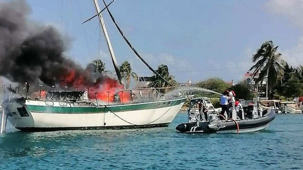 Sofoca Marina-Armada Incendio en velero fondeado en Isla Mujeres