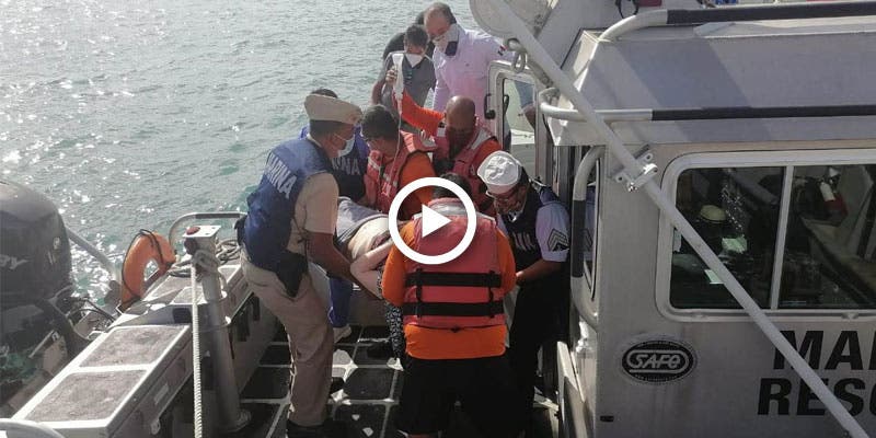 Video: Auxilian a turista propelada por embarcación en Isla Mujeres; la evacuación médica fue realizada por personal de la V Región Naval.