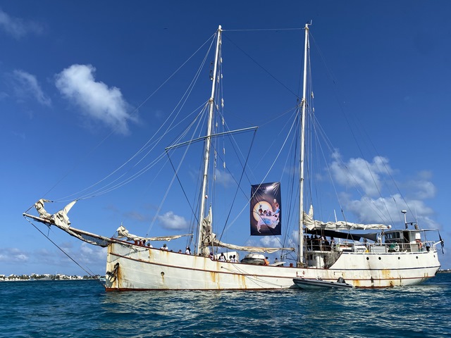 El barco salió entre los yates y embarcaciones turísticas, con aplausos y consignas de la lucha zapatista.
