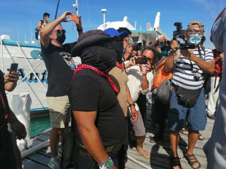 Zarpa de Isla Mujeres delegación zapatista que va a ‘conquistar’ Europa; “invadirán” España para conmemorar el 500 aniversario.