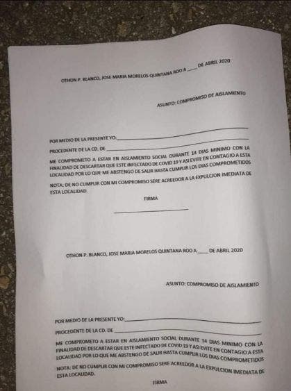 El acuerdo que fue tomado hace referencia que todo aquel ciudadano que intente regresar a Othón P. Blanco luego de haber trabajado en cualquier punto del Caribe Mexicano deberá firmar un “compromiso de aislamiento” en el obligará a la persona y su familia mantenerse por un periodo de 14 días en aislamiento social, sin derecho a salir a la vía pública, de negarse, proceden a no permitirle el acceso.