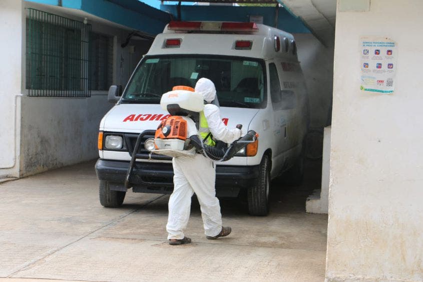 Los trabajos de desinfección en áreas públicas, por ejemplo, Hospital Integral y oficinas de gobierno, son acciones que se realizan a diario, desde el inicio de la contingencia para evitar la propagación del Sars-Cov-2.