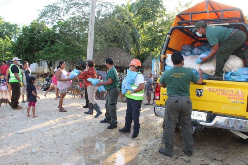 Las autoridades municipales visitaron las comunidades de San Carlos, Martirio, Pozo Pirata, Zafarrancho y Naranjal, ahí en coordinación con dos brigadas de la Coordinación Estatal de Protección Civil y de la Comisión Nacional Forestal (Conafor), entregaron una despensa a cada familia, así como un bulto de semilla de maíz para cultivar.