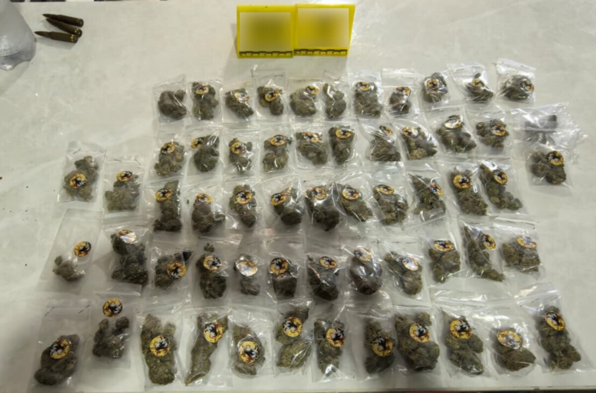 En ese sitio se aseguraron hierba verde y seca (cannabis), material sólido de distintos colores, así como chalecos, uniformes y camisolas tácticas, radios de comunicación, cargadores metálicos y cartuchos de diversos calibres.