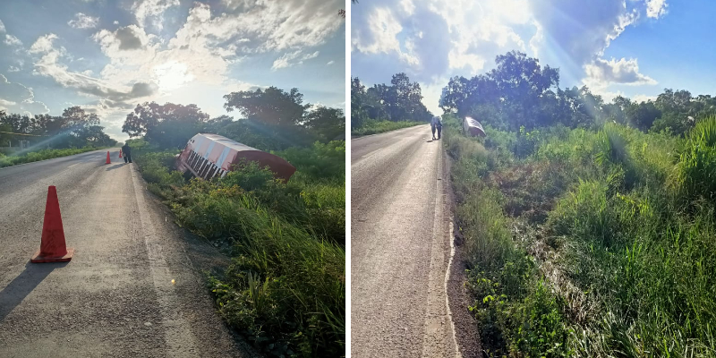Camión de carga se sale de la carretera en la vía Cancún-Mérida. Un accidente automovilístico se registró en la carretera federal Cancún-Mérida, a la altura de la comunidad de Santa Melba, donde los daños fueron materiales y sólo pasaron peripecias todo tipo de vehículos.