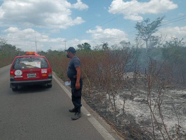 Un conato de incendio se registró sobre la carretera federal Cancún-Mérida, a la altura de la comunidad de Santa Melba, perteneciente al municipio de Lázaro Cárdenas.