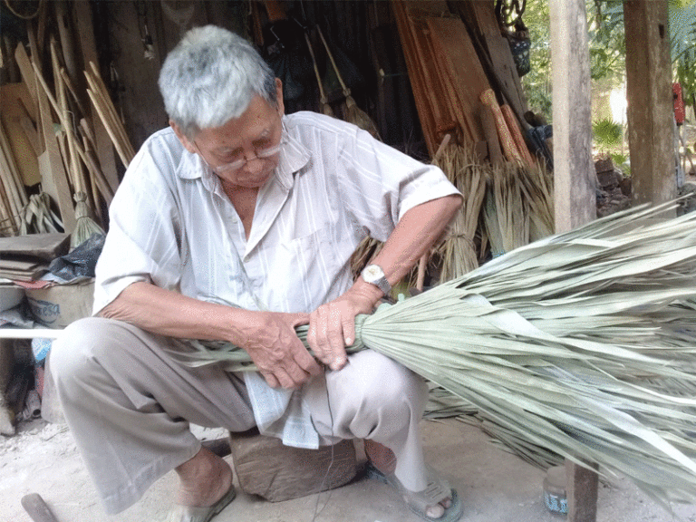 Andrés Koyoc Cen admite que a sus 72 años de edad, la manufactura de escobas es la única oportunidad que tiene para su sustento económico.