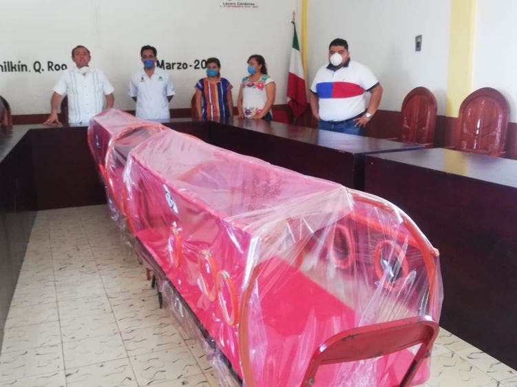 El presidente municipal de Lázaro Cárdenas, Josué Nivardo Mena Villanueva, entregó al hospital integral de Kantunilkín, dos capsulas de traslado para las personas que salgan sospechosos por el Covid-19.