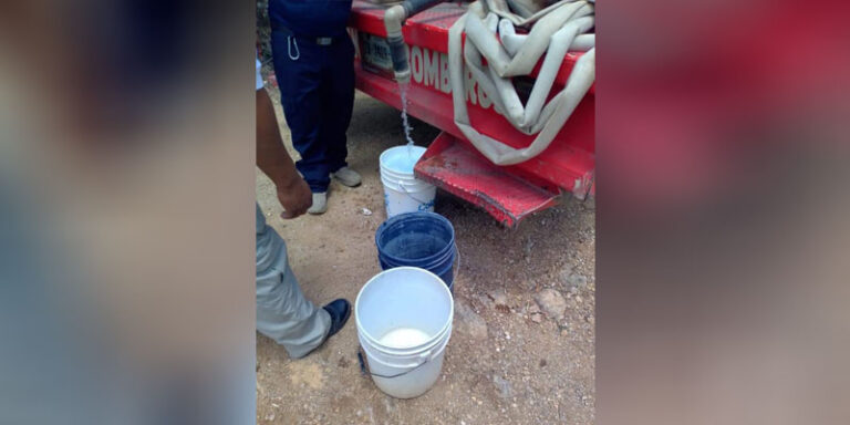 La dirección de protección civil del Ayuntamiento de Lázaro Cárdenas, en coordinación con la Comisión de Agua potable y Alcantarillado (CAPA), apoyaron para surtir con el vital líquido a las familias de la comunidad El Tintal, ya que por cuestiones técnicas del equipo operador no llega con la presión suficiente.