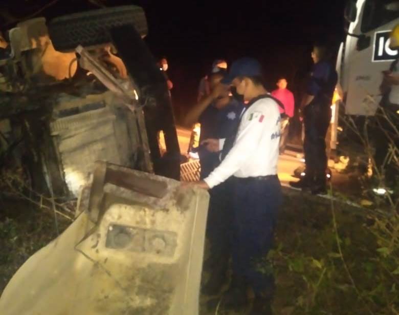 ‘Fantasma’ saca de la carretera Cancún-Mérida a trabajador de ICA; conductor sufrió lesiones leves tras terminar volcado.