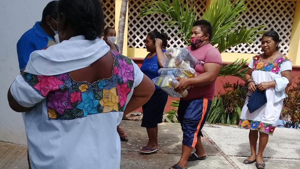 La subdelegada de la comunidad de San Cosme, Gabina Dzib May, agradeció el apoyo que brinda de manera bimestral la Fundación Simi a través de la delegada, Aurelia Ávila Soto, porque se benefician de manera directa más de 200 familias con despensas y adicional se les brinda atención médica.