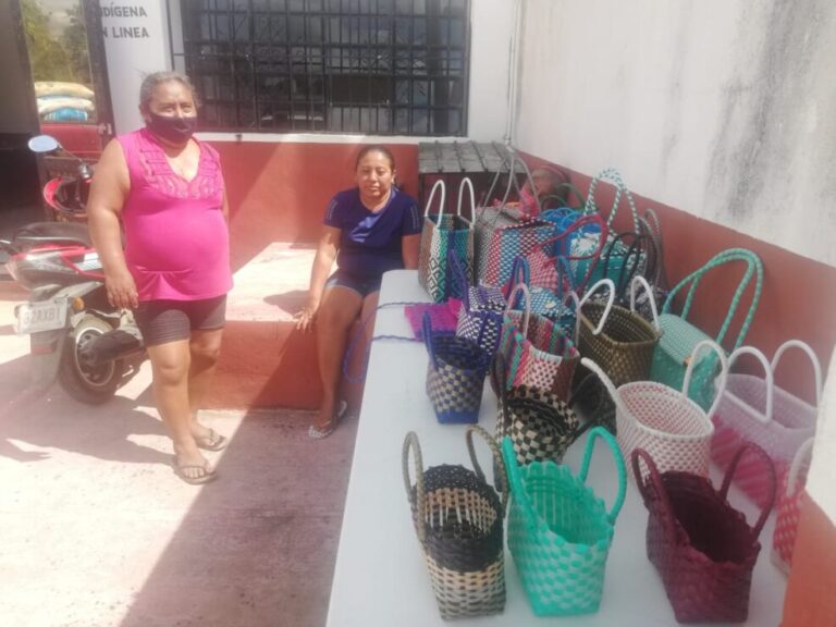 Ofertan bolsas artesanales frente a la CROC en Kantunilkín.
