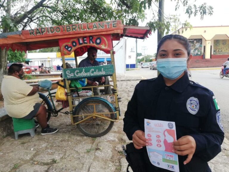 El director de Seguridad Pública y Tránsito Municipal, José Elías Góngora Chimal, informó que personal a su cargo se encarga de distribuir trípticos, ya que por la pandemia del Covid-19, aumentó los casos de violencias en mujeres y que en ocasiones temen poner la denuncia.