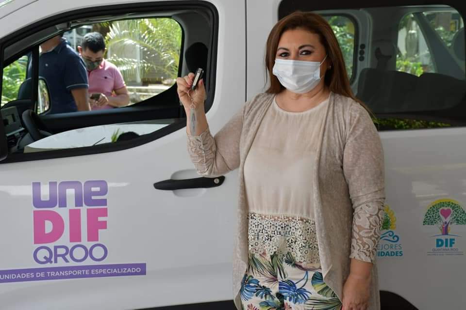 La presidenta del DIF Municipal de Lázaro Cárdenas, Marisol Escalante de Mena, recibió de parte de la presidenta del DIF Quintana Roo, Gabriela Rejón de Joaquín, dos unidades de transporte para apoyar a personas con necesidades especiales.