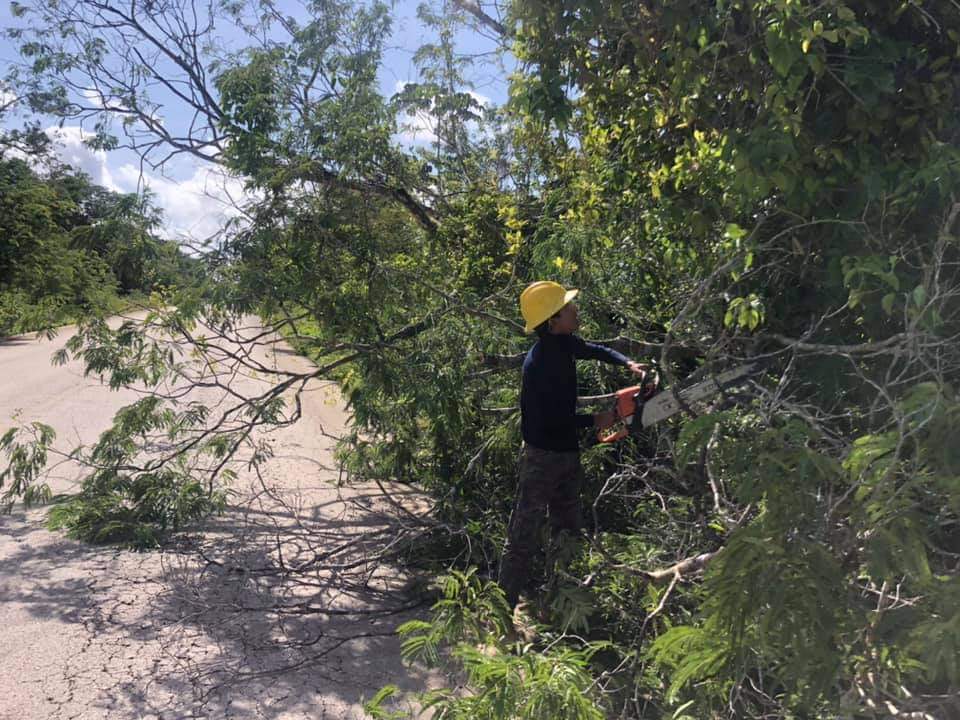 Retiran árbol que obstruía la carretera Solferino-Chiquilá; trabajadores del Ayuntamiento pusieron manos a la obra.