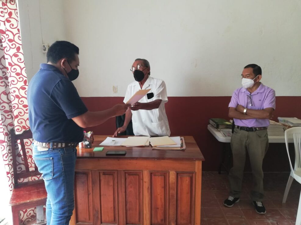 Hoy se llevaron a cabo los trabajos de entrega-recepción de los bienes muebles e inmuebles entre el presidente del Comisariado Ejidal, Víctor Pech Moo, y el saliente que encabeza Arsenio Balam Helguera.