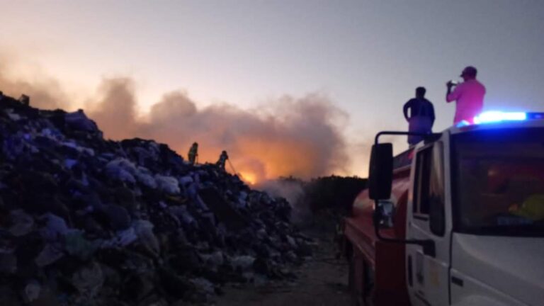 La Coordinación Estatal de Protección Civil, en coordinación con Bomberos, Policía Municipal, voluntarios, personal del basurero y de Servicios Públicos Municipales, mantiene las labores para controlar un incendio en el basurero de Holbox.
