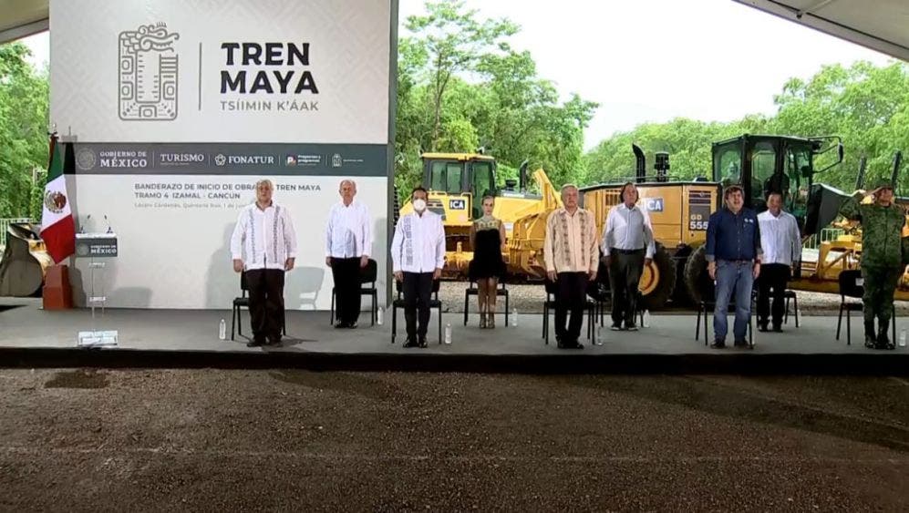 Hoy por la mañana López Obrador dijo: “luego de estar en Isla Mujeres vamos a trasladarnos al lugar, al sitio, que es un cruce de la carretera Cancún-Mérida, un cruce que va a Holbox, ahí vamos a dar el primer banderazo del Tren Maya, el tramo de la autopista, donde inicia la autopista de Mérida-Cancún hasta este sitio, es el primer tramo; mañana vamos a hacer lo propio en el tramo que corresponde a Yucatán, luego el tramo que corresponde a Campeche y luego el tramo que corresponde a Tabasco y a Chiapas.