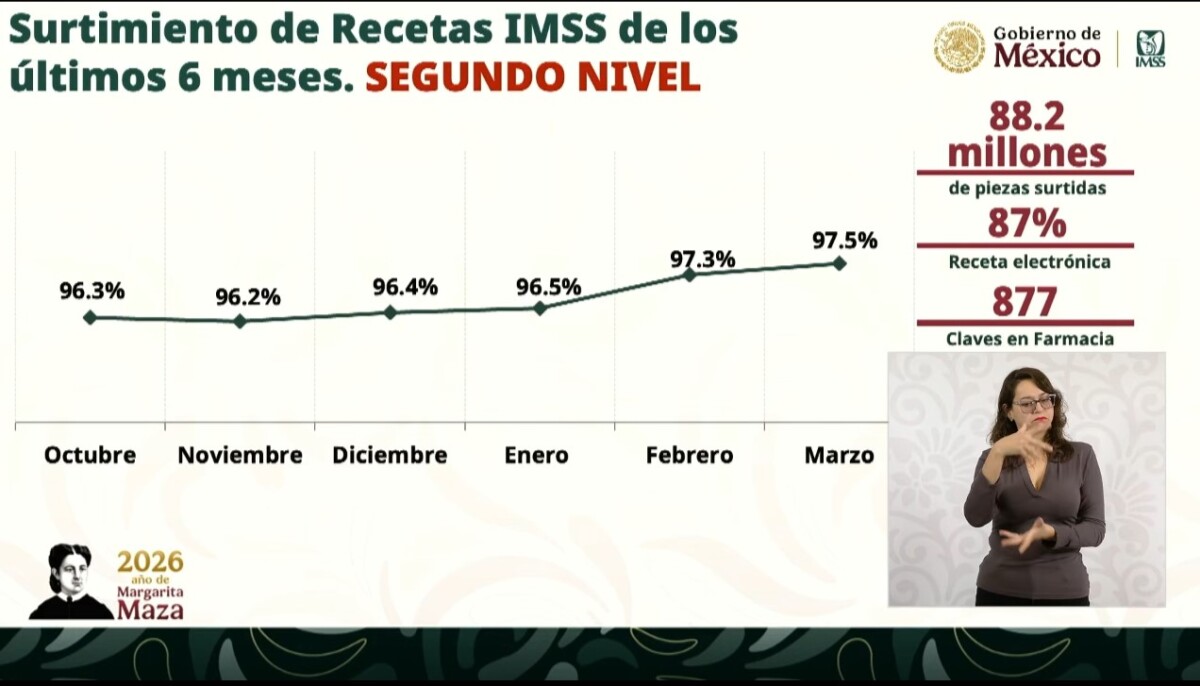 Finalmente, el funcionario resaltó que el monitoreo del abasto en unidades oncológicas se realiza diariamente mediante sistemas digitalizados, alcanzando niveles superiores al 96% de suministro en hospitales especializados.