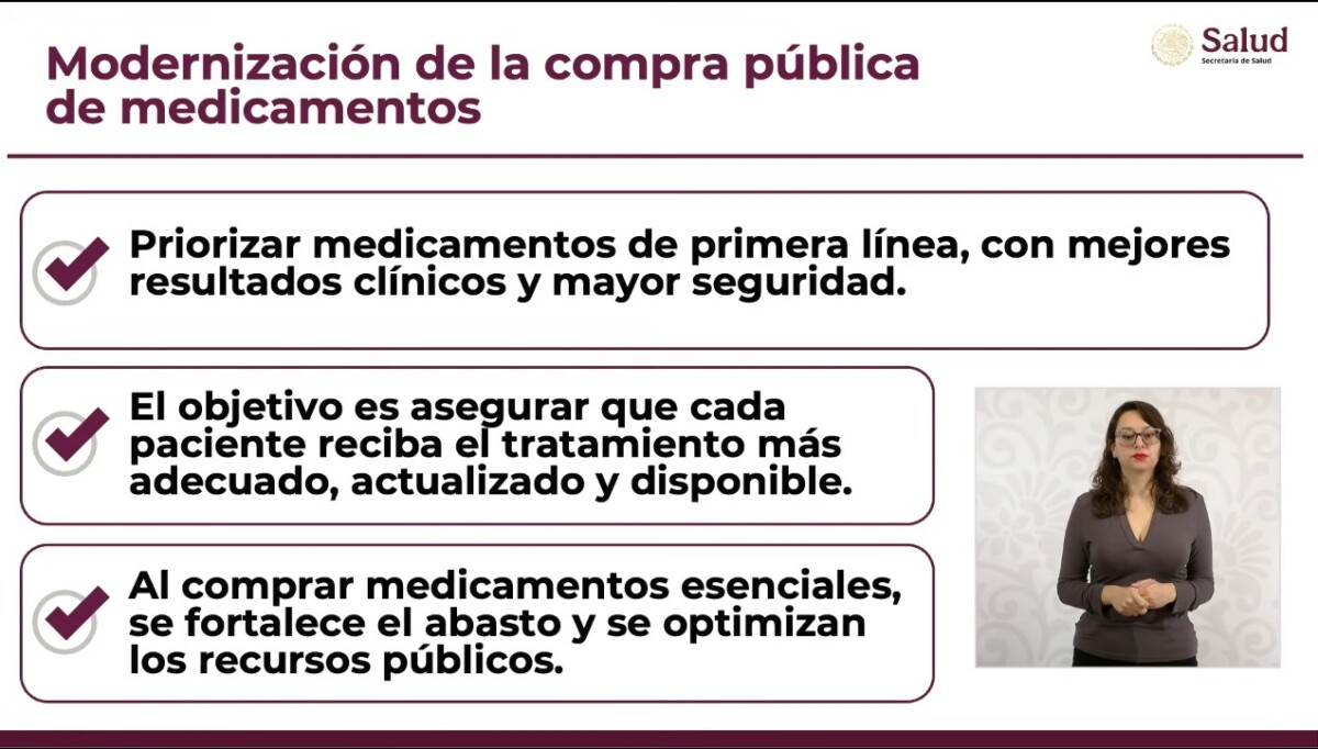 “El objetivo es que las personas reciban el tratamiento más adecuado, actualizado y disponible. Y, por lo tanto, al comprar medicamentos esenciales, se fortalece el abasto y se optimizan los recursos públicos”, apuntó.