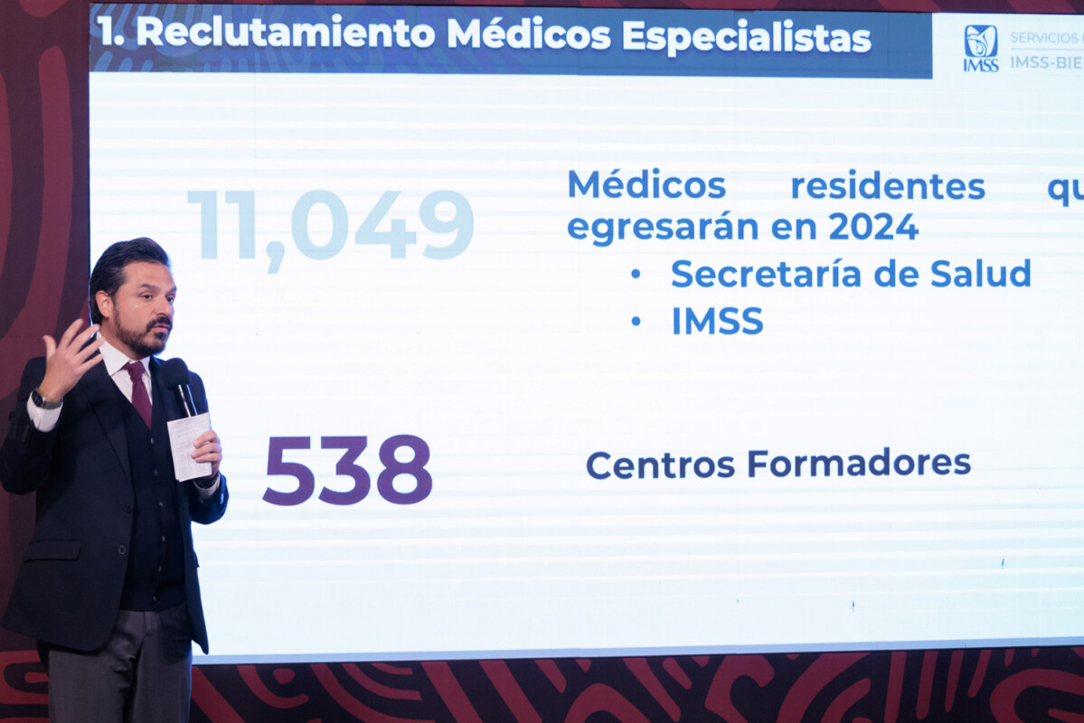 El director general del Instituto Mexicano del Seguro Social, Zoé Robledo Aburto, anunció el inicio de las Jornadas de Reclutamiento y Contratación para Médicos Especialistas 2024 en 23 estados incorporados al Plan de Salud IMSS Bienestar, implementado para atender a población sin seguridad social.
