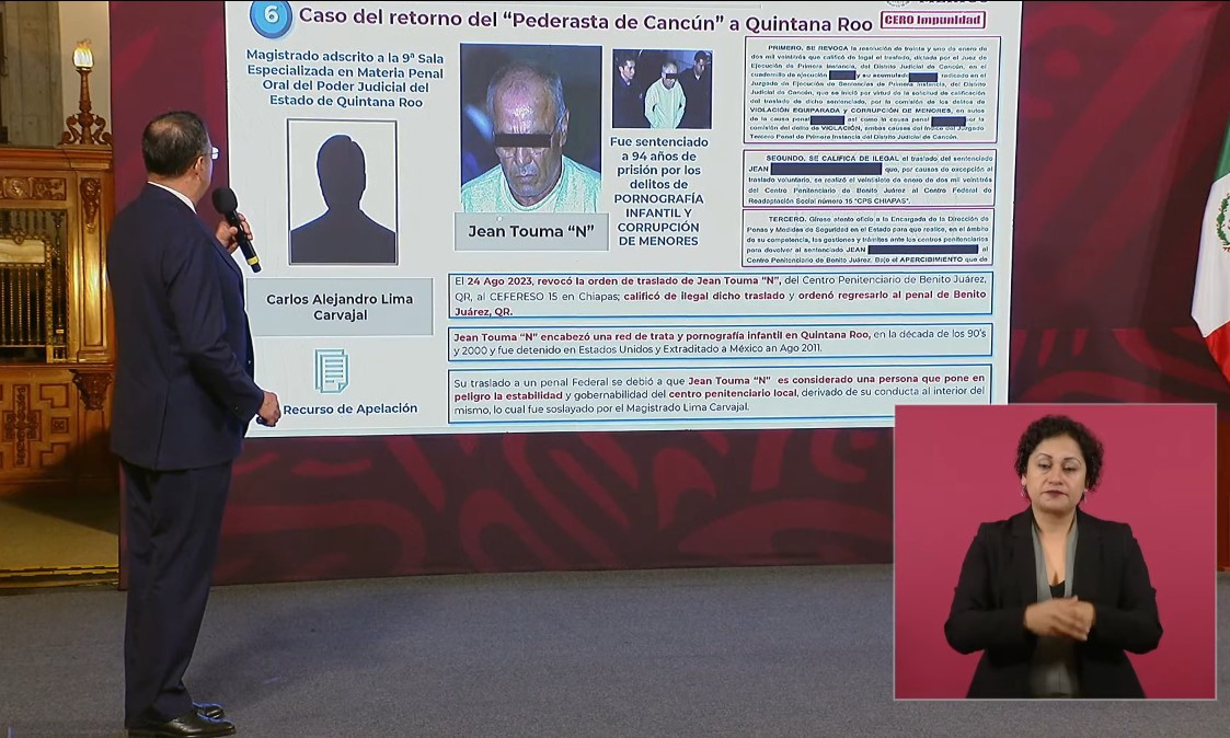 Respecto a Succar Kuri, la secretaria de Seguridad y Protección Ciudadana, Rosa Ícela Rodríguez, destacó que aún permanece en el Cefereso 15 en Chiapas, pero que el mandato de un juez es que sea trasladado al penal local de Cancún, localidad en la que operaba el empresario hotelero de origen libanés, acusado desde 2003 de pornografía infantil y corrupción de menores.
