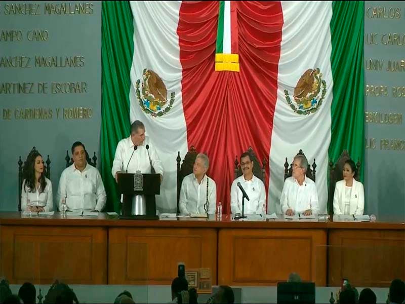 El gobernador de Tabasco, Adán Augusto López Hernández, dijo “Aprovecho para hacer un reconocimiento a la LXIII Legislatura del Congreso de Tabasco por su sintonía con la Cuarta Transformación y por la pasión y razón con que han asumido su mandato como representantes”.