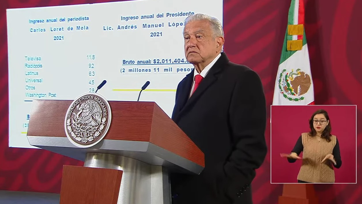 El tema volvió a ser mencionado por el mandatario mexicano en la “mañanera”, esto luego de que fuera cuestionado por la reportera Sara Pablo acerca del debate que se generó en redes sociales durante el fin de semana por haber revelado el viernes pasado los ingresos de Carlos Loret de Mola.