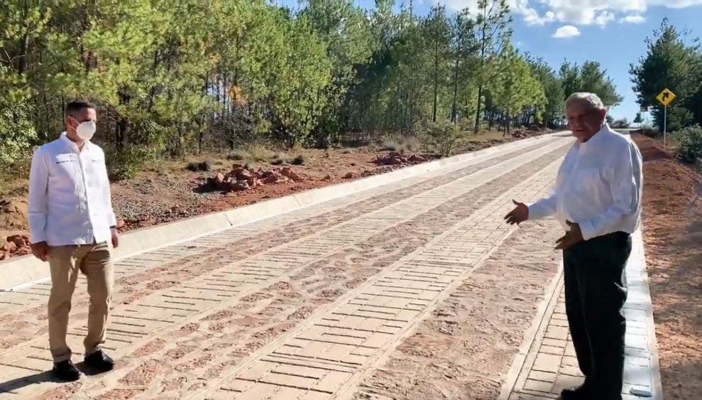 “Y no sólo es la construcción, es la obra de arte, cómo van haciendo estos caminos mujeres y hombres, porque participa todo el pueblo” y esto, añadió, tiene un efecto multiplicador porque se generan empleos y se reactiva la economía de la misma comunidad, en la misma región, para reactivar la economía, reactivar el comercio.