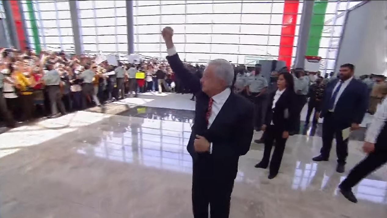 “Nos encontramos en el área del aeropuerto Felipe Ángeles, es un predio de 3 mil 800 hectáreas que se compone de una ciudad militar, y la parte norte se encuentra el aeropuerto internacional. Es un aeropuerto de tres pistas de aterrizaje, dos de ellas para operación, tiene su torre de control principal, nos encontramos dentro del edificio principal de pasajeros, del otro lado está el área de servicios aeroportuarios, la carga nacional y doméstica, la terminal de combustible puerto, la zona de correos, la zona de convenciones”.