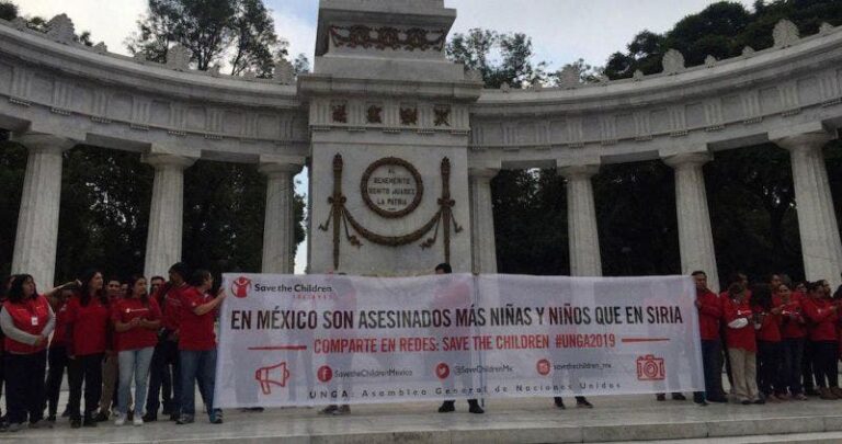 Al menos 30 mil menores cooperan con el narco: Save the Children – Un grupo de integrantes de Save the Children guardó un minuto de silencio en el Hemiciclo a Juárez por las niñas, niños y adolescentes víctimas de violencia en México y en el mundo.