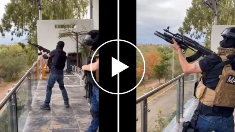 El video muestra a un par de individuos, presuntos integrantes del crimen organizado a juzgar por el tipo de armas, quienes enfundados en equipo táctico, lanzaron varias descargas de sus armas automáticas en un domicilio sin identificar.