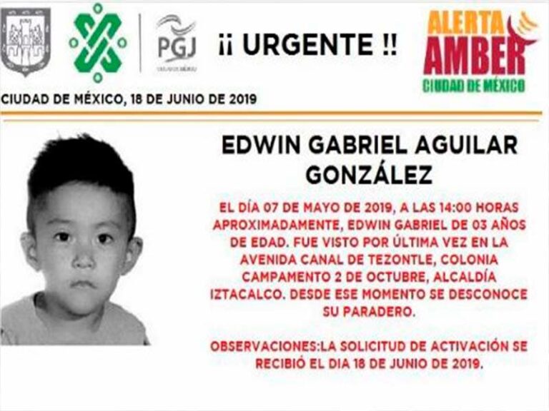 Según las autoridades Edwin Gabriel Aguilar González, fue visto por última vez en la avenida Canal de Tezontle de la colonia Campamento 2 de Octubre, en la alcaldía de Iztacalco, Ciudad de México.