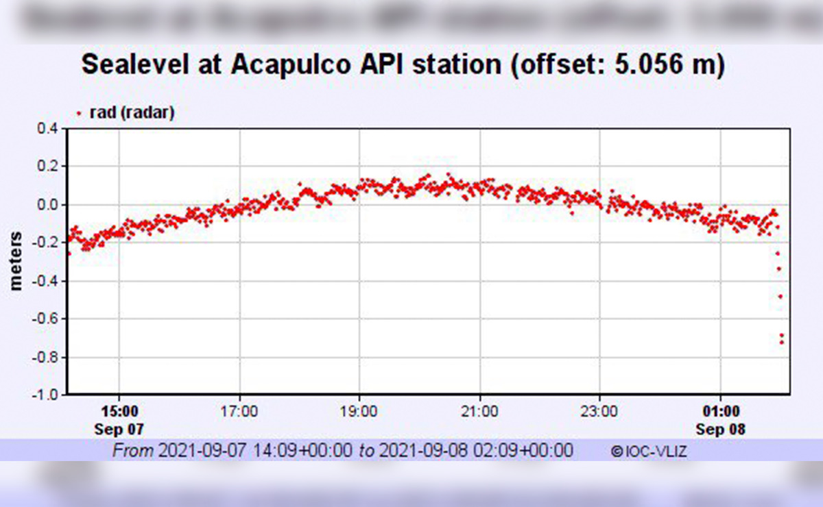 Sin descartar la alerta, el Servicio Mareográfico Nacional del Instituto de Geofisica de la Universidad Nacional Autónoma de México (UNAM) precisó que los datos no provienen de boyas, sino de un sensor de radar ubicado en el muelle por este instituto de investigación.
