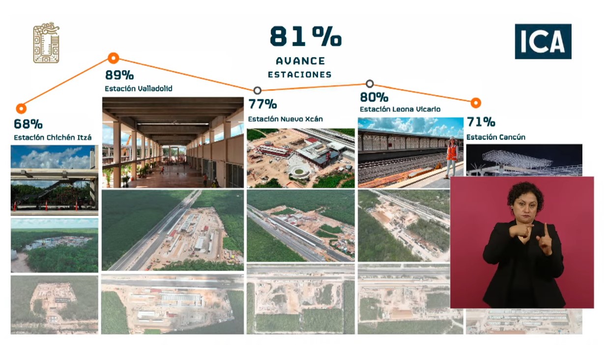 Detalló los porcentajes de desarrollo de estaciones que cruzan nueve municipios de Yucatán y Quintana Roo: