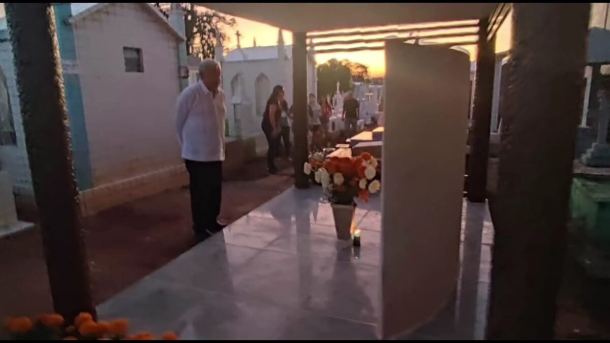 Frente a la tumba de su primera esposa colocó un ramo de flores y antes de retirarse pidió a los tabasqueños no olvidar a “nuestros difuntos que son nuestras raíces”.