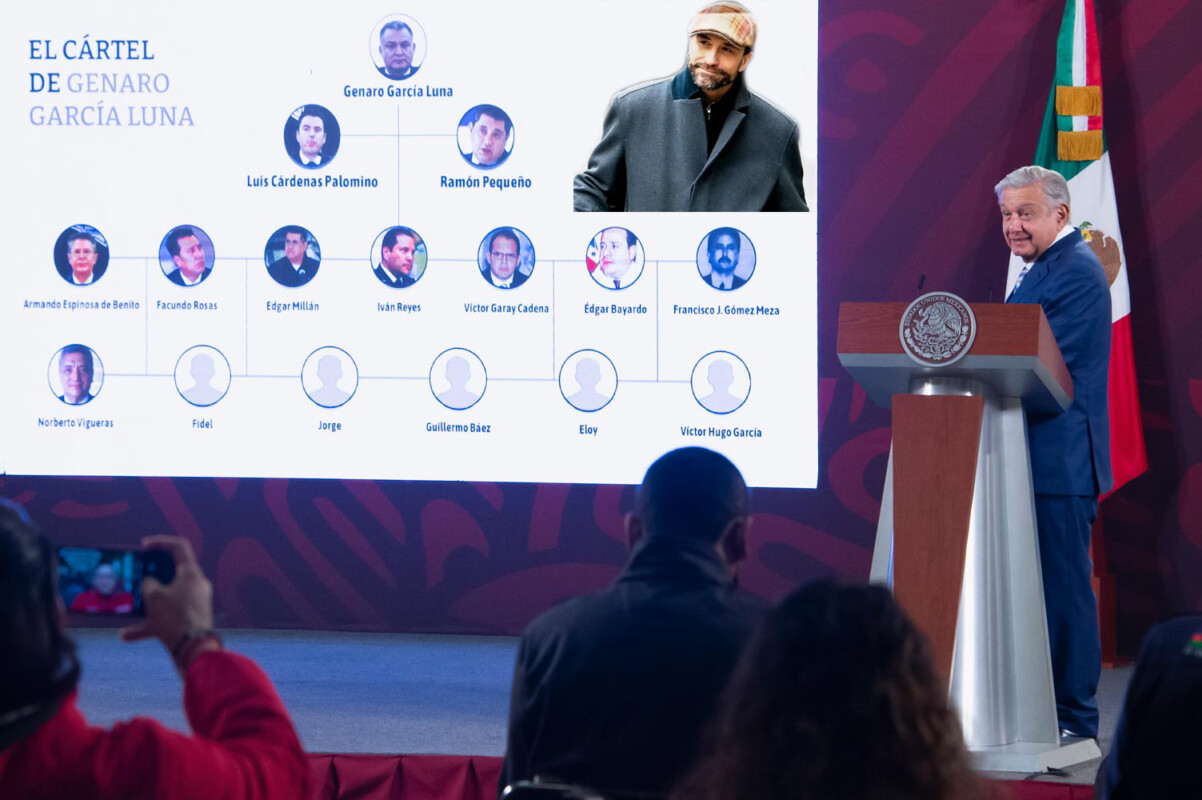El organigrama de la presunta estructura de funcionarios públicos que según la fiscalía encabezó García Luna para proteger al cártel de Sinaloa “está mocho”, dijo el presidente López Obrador, algo “le falta para arriba”, es decir, por encima de García Luna.