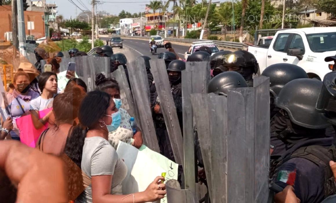 Un grupo de personas, mujeres la mayoría, que realizaban una protesta bloqueando una vialidad en Acapulco, Guerrero, indignadas por la opacidad de las autoridades para localizar a varias personas desaparecidas, fueron desalojados violentamente por antimotines de la policía estatal quienes disuelven la manifestación.