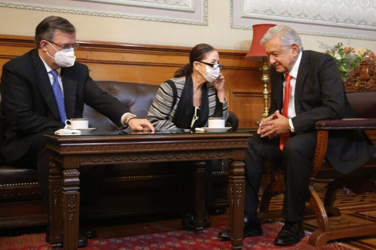 El presidente López Obrador estuvo acompañado en la conversación telefónica en su oficina de Palacio Nacional por Marcelo Ebrard, secretario de Relaciones Exteriores y por Lilia Rubio, traductora del Ejecutivo federal.