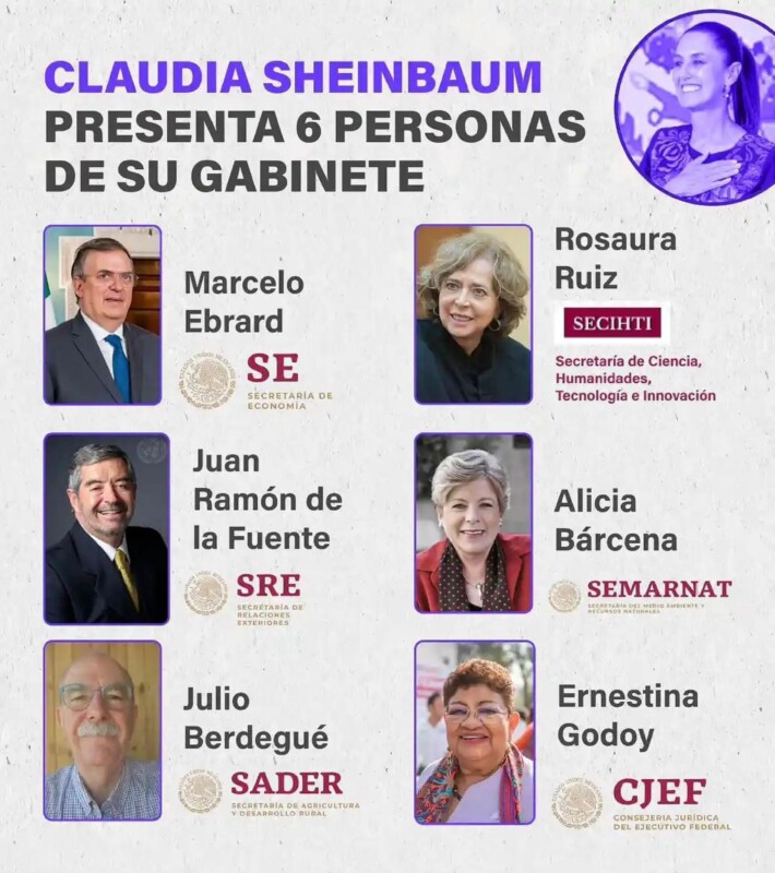 Así, se conforma la primera parte del Gabinete que ha sido anunciado por la virtual presidenta electa, Claudia Sheinbaum: