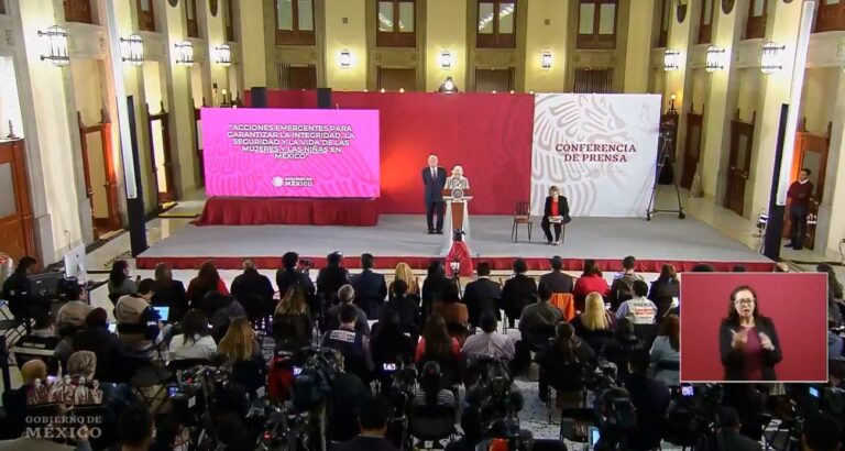 El Presidente de México, la secretaria de Gobernación y la titular de Inmujeres, detallando el plan de acción.