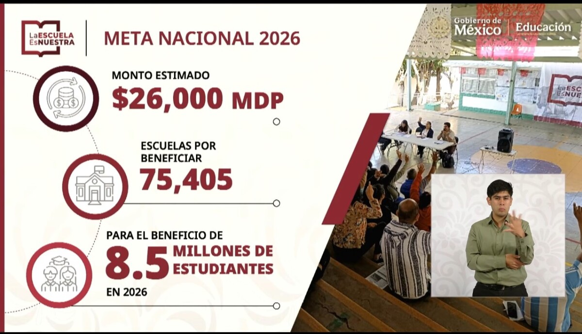 En ese sentido, la titular del programa, Pamela López Ruiz, informó que para este año se cuenta con un presupuesto de 26 mil millones de pesos, con el que se atenderán más de 75 mil 400 planteles de educación básica y media superior, en beneficio de alrededor de 8.5 millones de estudiantes.