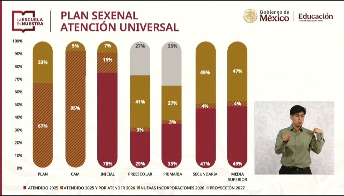 Como parte de esta estrategia, también se impulsa la expansión de la educación media superior, con la meta de generar 200 mil nuevos espacios para estudiantes hacia 2030, así como el fortalecimiento de instituciones de educación superior como la Universidad Rosario Castellanos.